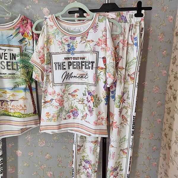 Шикарные летние женские костюмы Турция Рав Raw размеры МЗамеры М футболка ширина под руками 52 см длина 60 см штаны ширина в бедрах 52 см длина 100 см шаг 73 см