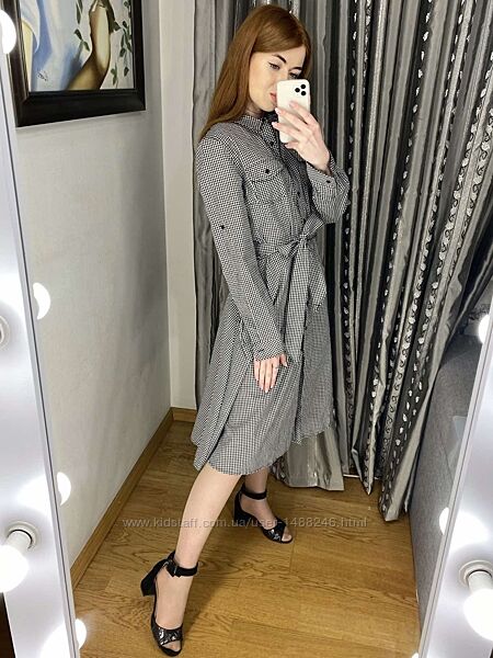 Подробное описание: Платье мелкая клетка под пояс Италия