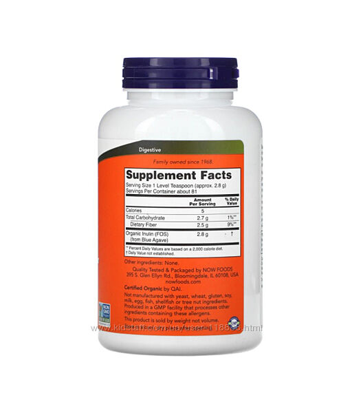 # Now Foods, сертифицированный органический инулин, порошок из чистого пребиотика, 227 гОПИСАНИЕ: