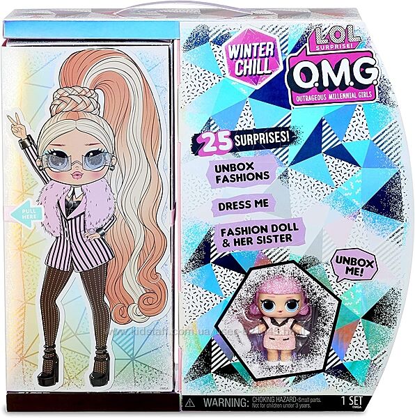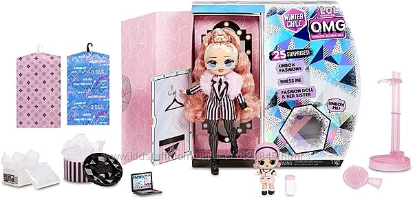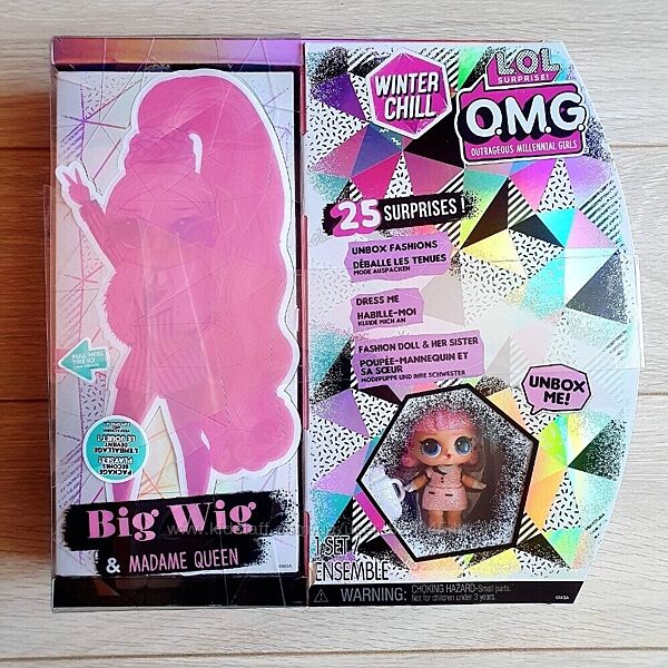 LOL OMG Big Wig і молодша сестра Madame Queen ОРИГІНАЛ MGA Набір з лялькою Winter Chill Big Wig від бренду LOL Surprise з серії OMG — це ж просто мрія для справжніх модниць! Ти вже придумала імя для своєї лялечки? В компанії з великою гламурної лялькою дівчатка знайдуть її молодшу сестричку. Під час розпакування власницю порадують 25 сюрпризів.