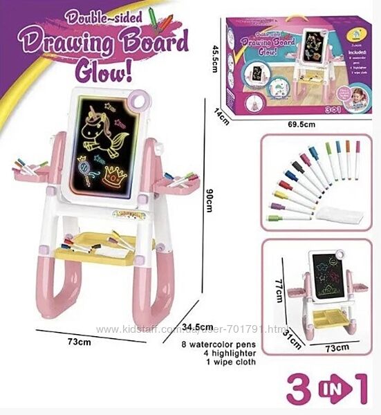 Подробное описание: Дитячий Мольберт з підсвічуванням, Двосторонній YM 2216 A Рожевий та голуби