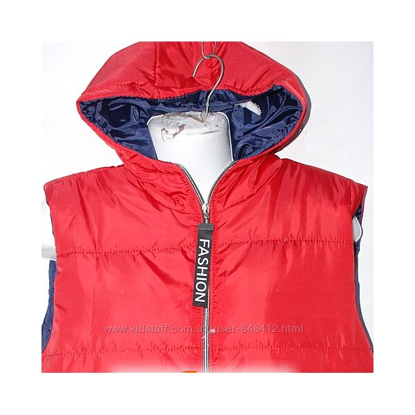 Женские жилетки на синтепоне. Материал верха- плащовка красного цвета, подкладка шелковая. Два кармана на молнии. Капюшон не отстёгивается.ПАРАМЕТРЫ