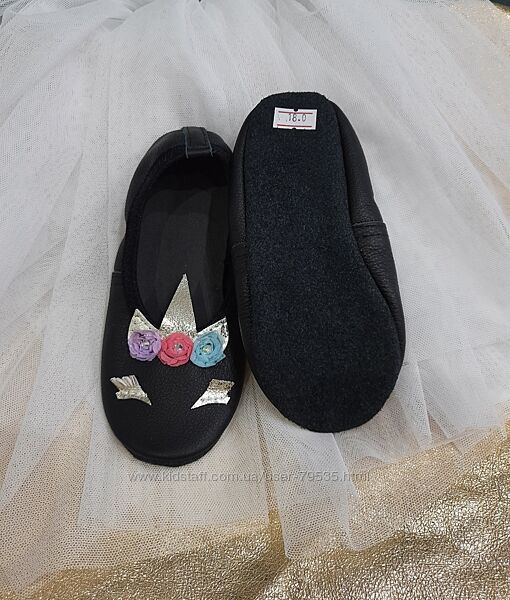 🦋 Шкіряні чешки з єдиноріжком чорного кольору. Золотий ріжок і кольорові квіточки із стразами.🦋 Дуже зручні, м´які, легко і зручно взувати.