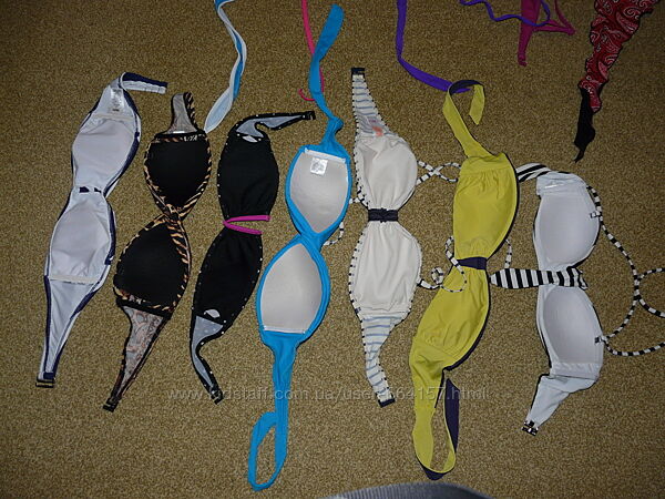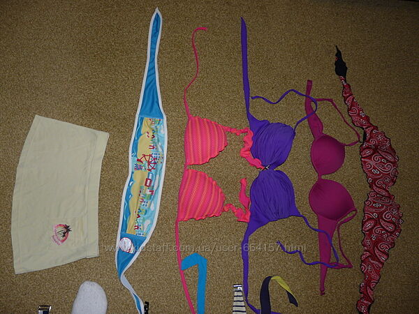 Верх от купальника. бандо чашка В, фото 3 чашка С . Чашки держат форму, тонкий поролон, По фото 3 фиолетовый пуш-ап с бретельками. Верх бандо в морском стиле ( с корабликами) без поролона, чашка С. Цена за 1 шт 50.0 грн. Замеры, дополнительные фото по запросу. Юбка пляжная , цвет масло размер S. Цена 40.0 грн.