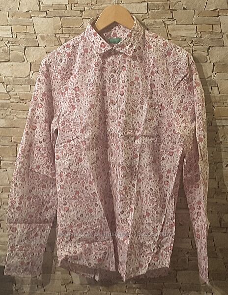 Стильная рубашка кэжуал розового цвета с цветочным принтом размер М , итальянского бренда United colors of Benetton ( оригинал с бирками на пластиковом замке) из тонкого 100% хлопка для создания разнообразных луков на каждый день!Хлопок хорошо впитывает и отводит от тела влагу!