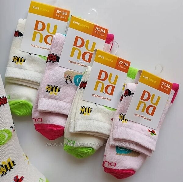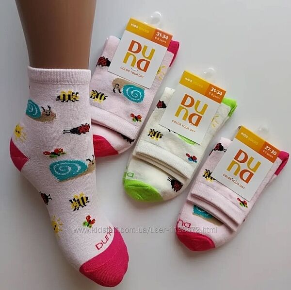 Ніжна новинка від тм "Дюна". Нова колекція шкарпеток весна-літо.Склад: 65% бавовна, 33% па, 2% еластан.