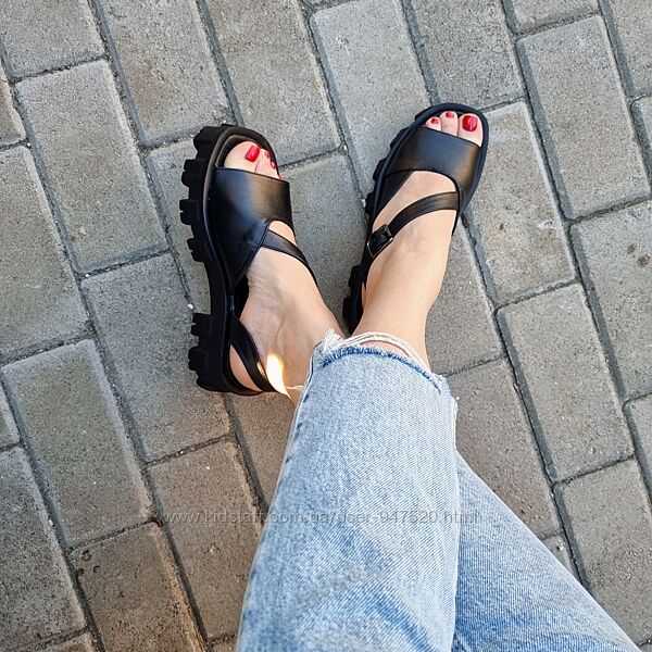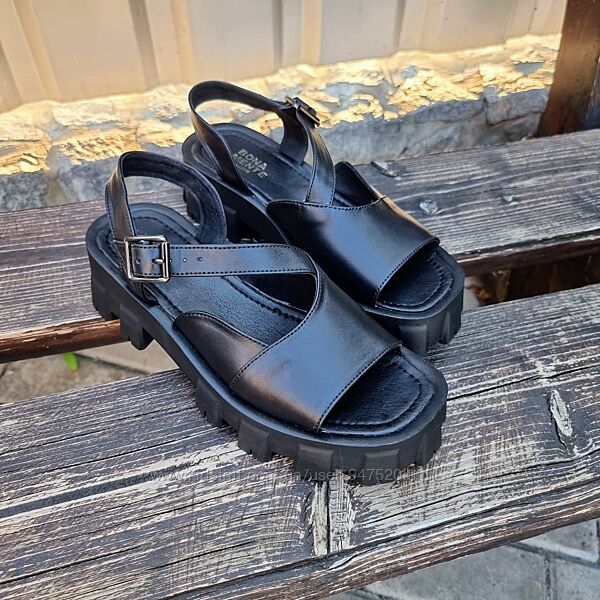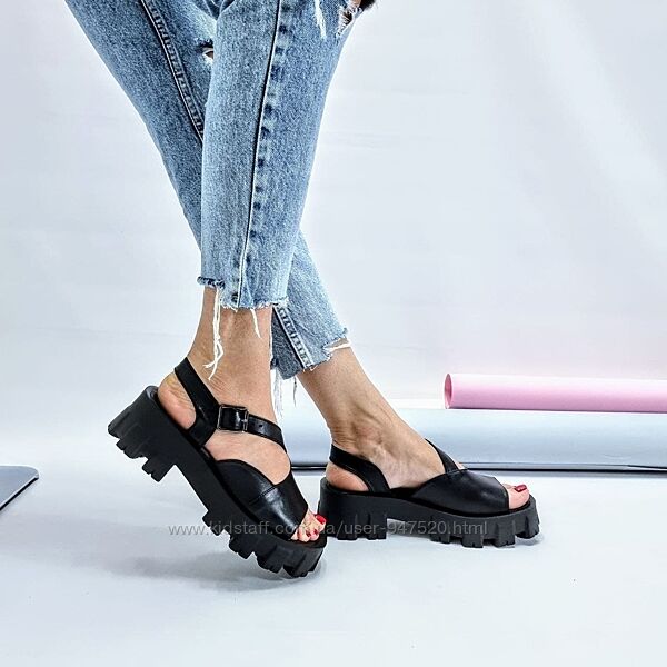 Подробное описание: Босоножки на ремешке, тракторная подошва, натуральная кожа
