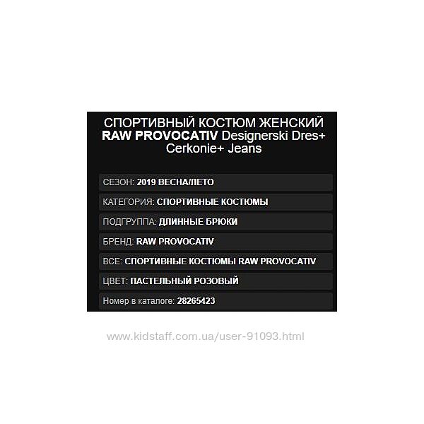 Подробное описание: Спортивный прогулочный костюм RAW Турция Provocativ