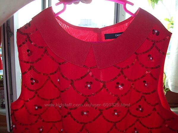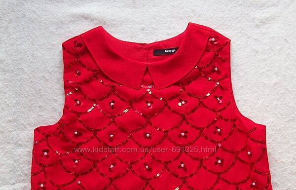 Предлагаю нарядную шифоновую блузку в пайетках, от George. Есть подкладка. Б/у пару раз аккуратно, состояние отличное, смотрите фото.Размер указан на 11-12 лет. Длина 50 см, ширина груди подмышками 42 см.