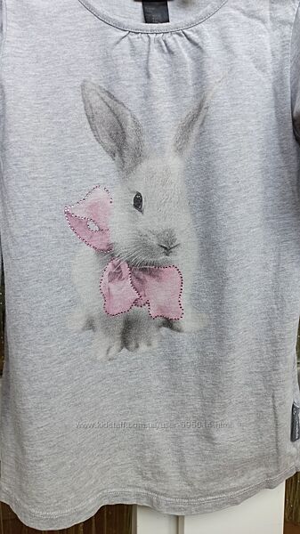 Фото 9-10 (серая с кроликом) - 35 грн. Фирма H&M. По бирке 4-6 лет (110-116 см). В хорошем состоянии! Идет как туничка, под лосинки будет супер! Рукав внизу присобран. По центру большой кролик, бантик в камнях. Смотрится классно!