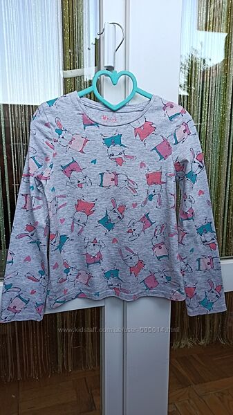 Фото 2-3 (сиренево-белый) - 40 грн. Фирма TU. По бирке 6 лет (116 см). В хорошем состоянии! На правом рукаве сзади есть небольшое светлое пятнышко, похоже просто на светлый развод, в носке вообще не видно, я случайно увидела. На фото попыталась передать. Ажурный узор у горловины как вышивка, объемный. Красивый цвет, смотрится очень нежно)Фото 4-5 (серый в зайках) - 65 грн. Фирма Next. По бирке 5-6 лет (116 см). В очень хорошем состоянии. 100% коттон. Отличного качества, очень приятный на ощупь. Серого цвета в ярких зайках. Смотрится очень классно!