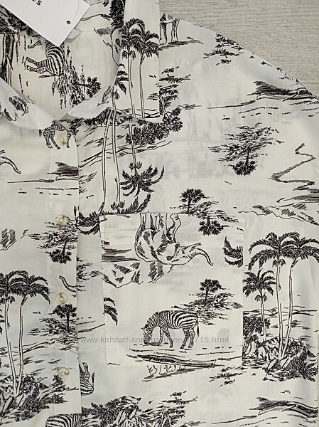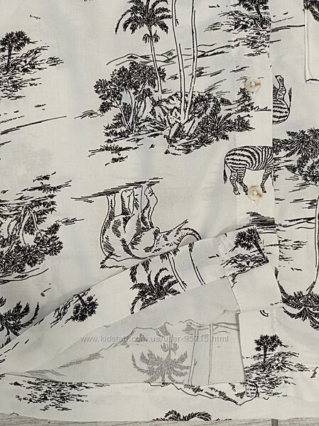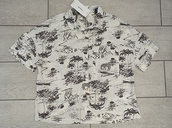 Принтованная короткая рубашка с короткими рукавами и и пуговицами спереди . Изготовлена из мягкой вискозной ткани.