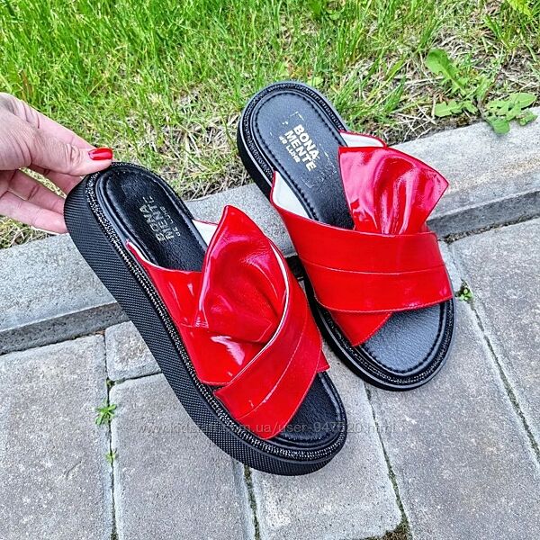 Подробное описание: Шлепанцы из лакированной натуральной кожи