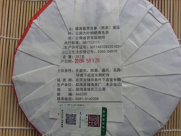 Подробное описание: Шу пуэр Богатство и удача. Фабрика Фухай, 19 г. Мэнхай. Китайский чай.