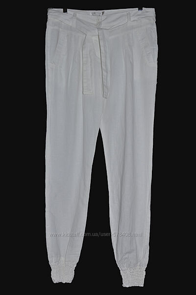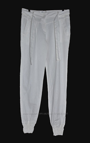 Летние белые брюки на широком манжете резинке внизу популярного итальянского бренда в области high-street. Застегиваются на молнию, двакосых боковых кармана.
