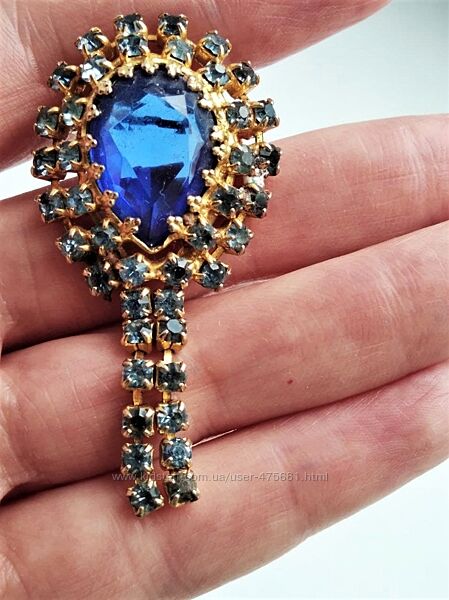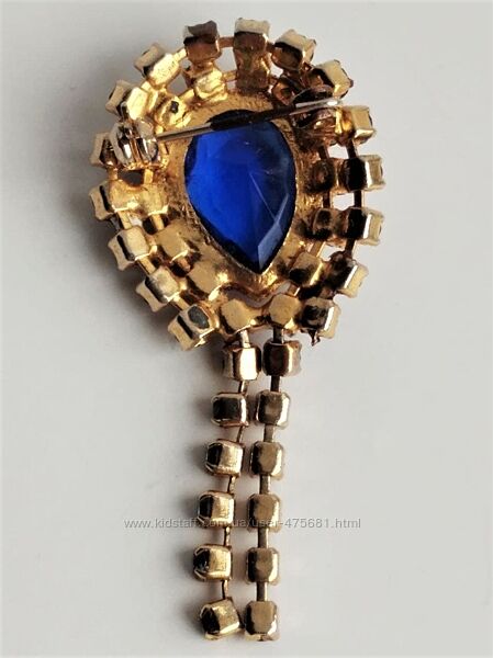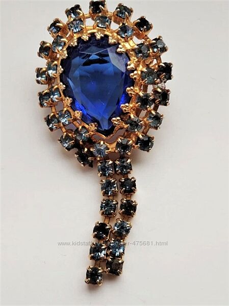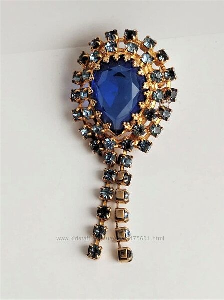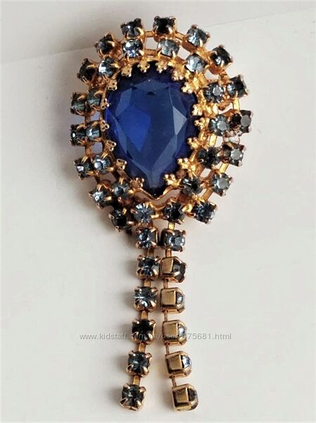 Подробное описание: Винтажная синяя брошь с кристаллами голубого цвета и подвесками, Чехия