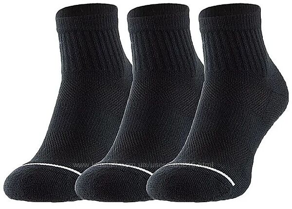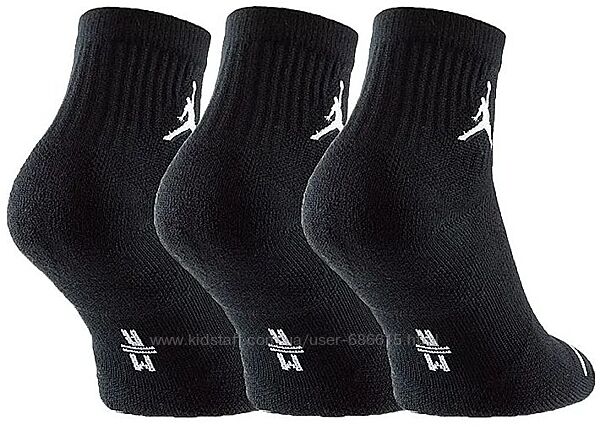 Классические мужские носки Jordan Jumpman Quarter 3PPK – стильная модель, неизменно пользующаяся популярностью среди мужчин по всему миру. В комплекте представлено три пары носков, окрашенных в минималистичный черный цвет и украшенных контрастным белым логотипом бренда в верхней части и в области носка.