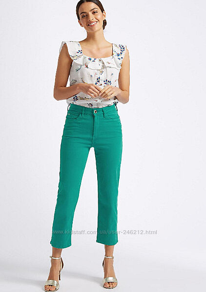 Укороченные стрейчивые джинсы от Marks&spencer Per Una из серии Roma .Цвет сочный зеленый , красиво садятся , внизу разрезики .