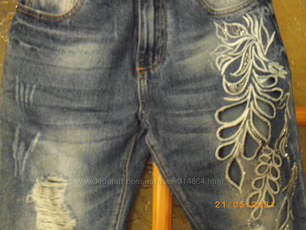 шикарные джинсы с вышивкой и камешками 26р, последние, распродажа магазина