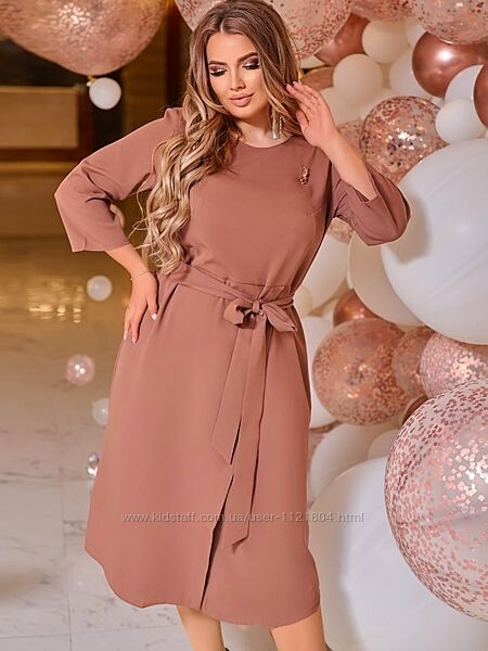 Романтичное платье-миди свободного кроя. Модель с укороченными рукавами и отрезной линией по талии. Асимметричный подол выполнен на запах. Застегивается на молнию в боковом шве. Брошка и пояс из основного материала в комплекте.