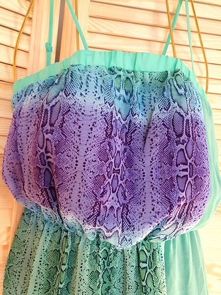 Нежная бирюза уходит сочный фиолет , фактуры добавит принт.