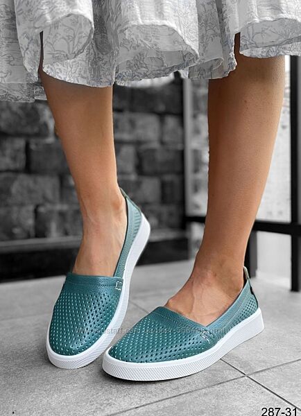 Подробное описание: Шкіряні жіночі літні мокасини колір морської хвилі, сірі та салатові