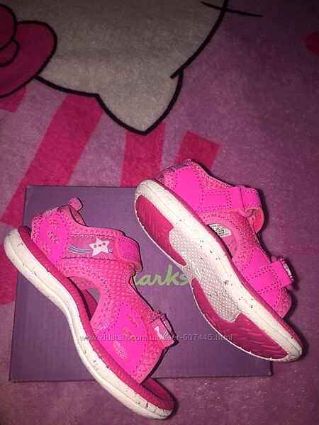 Продам яркие,легчайшие,красивые босоножки Clarks 21р-13,5 см место для ножки,в коробке,куплены в Интертопе,отличны для пляжа,быстро сохнут.Перешлю или самовывоз,без возврата.