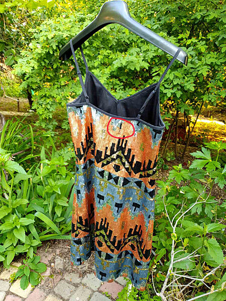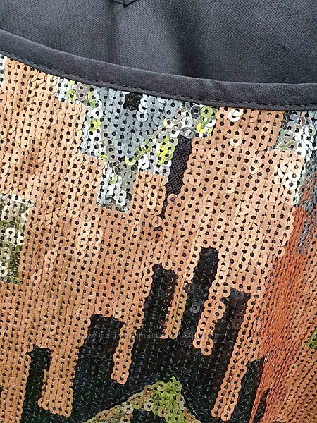 Есть небольшой дефект сзади не хватает около 3 см паеток , но благодаря принту совершенно незаметно ( см.Фото)