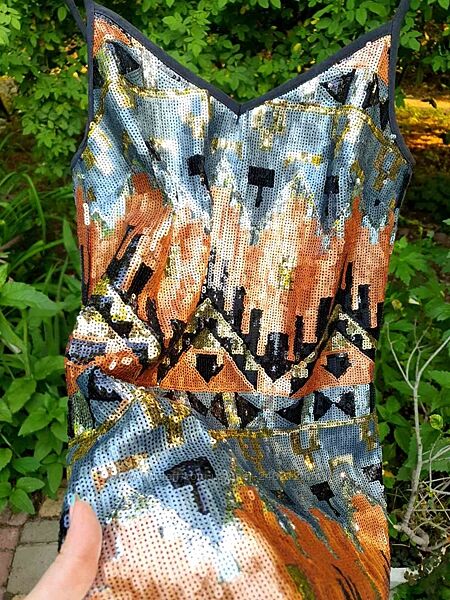 Геометрический принт , все переливается серебром и медью . .
