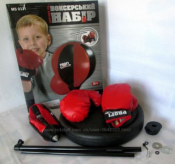 Детский боксерский набор Profi Boxing MS 0331 груша 20см, стойка 90-110см, 2 перчаткиБокс - самый оптимальный способ развить ловкость, координацию и силу Вашего ребенка. Лучшим помощником в тренировке достаточно отточенных и молниеносных ударов является Боксерский набор Profi Boxing MS 0331. Он состоит из: груши, в основе которой стойка из металла; боксерских перчаток с удобной липучкой (детских) насоса для надувания.