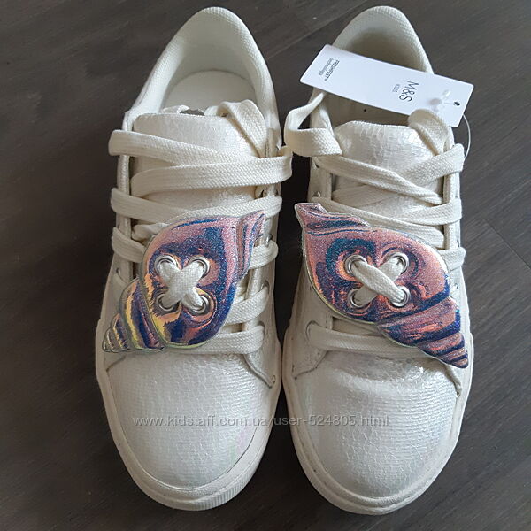 Мокасины,кеды белые marks & spencer uk 1,р.ев.33 на шнурках с переливающим эфектом,очень красиво смотрятся)Эксклюзивный ассортимент от Marks & Spencer специально разработанный, для комфортного ношения, в которой нуждаются дети )