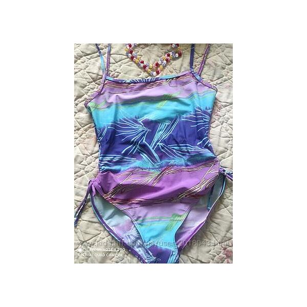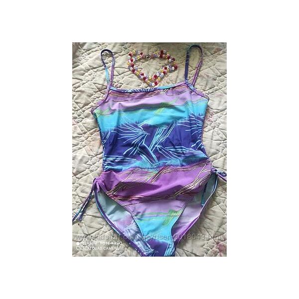 Супер красивый стильный яркий купальник в бассейн или пляж. Разноцветный с золотистыми вкраплениями, фото не передаёт, в жизни красивее. По бокам затягивается, как Вам удобнее. Спинка открыта. Очень красиво эффектно стильно смотрится на загар будет супер. Очень сильно стройнит. Размер на 48-50, замеры скину.Спрашивайте больше вопросов лучше 😉 всегда рада ответить 😉 обязательно обдумать свою покупочку 👆