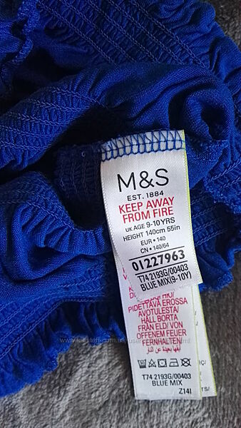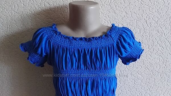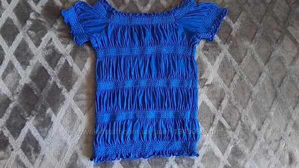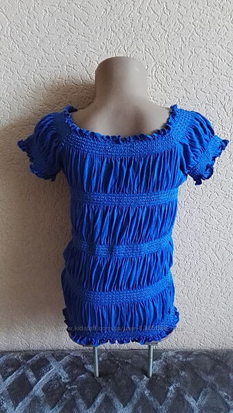 Блуза летняя на резинках для девочки 9-10лет,рост 140см от M&S. Фирменная,100% вискоза. Натуральный лёгкий щелковистый натуральныйтрикотаж. Цвет синий насыщенный. Оигинальная головина и рукава. Блуза