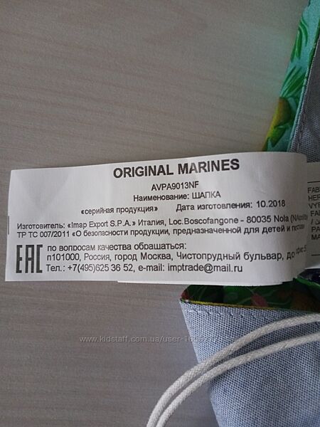 Подробное описание: Панама косынка детская, разм. 44, на обхват 42-43, original marines, италия