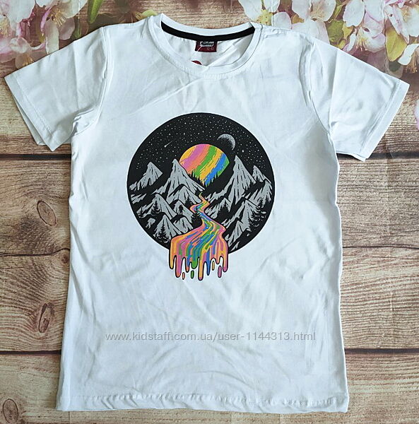 Футболка на мальчика приблизительно на рост от 140 до 170. Материал мягкий, приятный к телу, тянется. Состав 95% хлопок, 5% эластан. Производство Турция.погрешность +-1см.