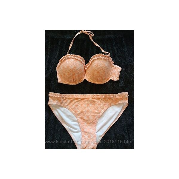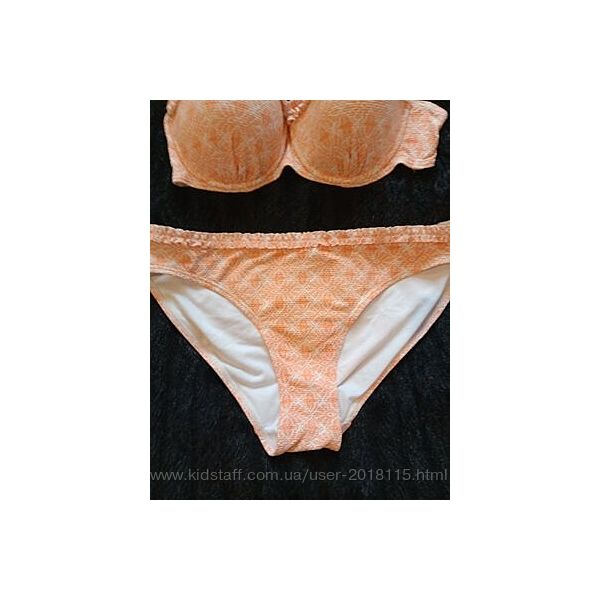 Красивый яркий купальник с рюшами в бассейн или на пляж. Цвет нежно оранжевый с белым, немного блестит за счёт рельефной ткани. Очень красивый, на загар вообще бомба будет! Отличное качество, интересный дизайн и ткань, плавки на подкладке. Ни разу не одет, велик, только примерки . Размер 46-48, чашка С, на фото. Пересылаю. Вопросы в личном сообщении. Смотрите также другие мои объявления.Доставка: пересылаю Укр или Новой почтой оплата на карту Приватбанка, возврата нет.