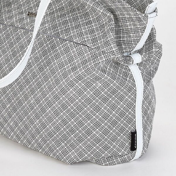 В качестве отделки применена однотонная искусственная кожа. Ткань и дно уплотнено. Сумочка держит форму. Изделие легко поддается чистке от загрязнений.