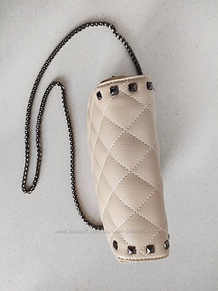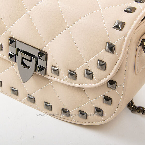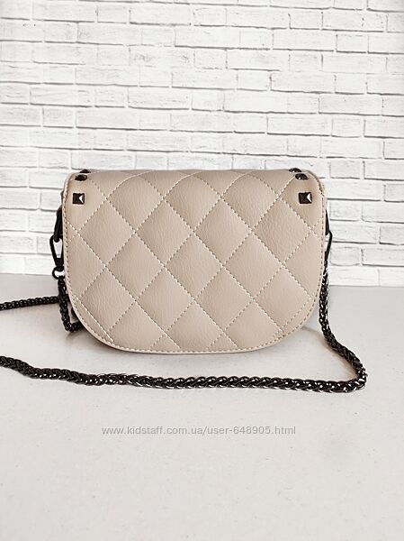Маленькая стёганая сумочка на цепочке с заклёпками ТМ Fashion. Актуальная полукруглая форма, небольшой размер - основные преимущества этой модели. В наличии бежевого цвета.Размер: Ширина сверху - 19.5 см, высота -13 см, толщина - 7 см