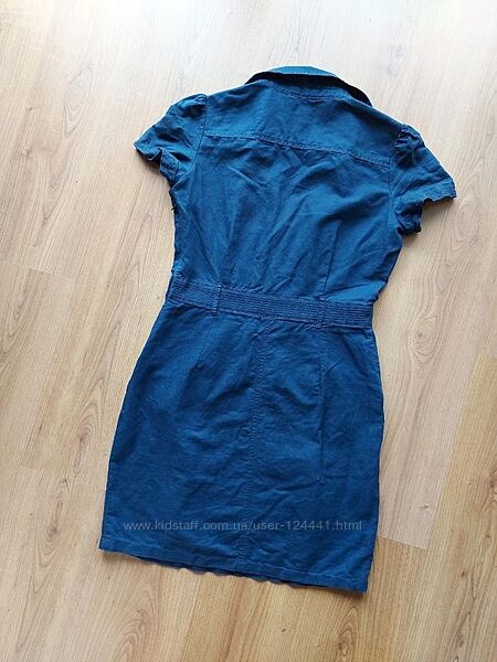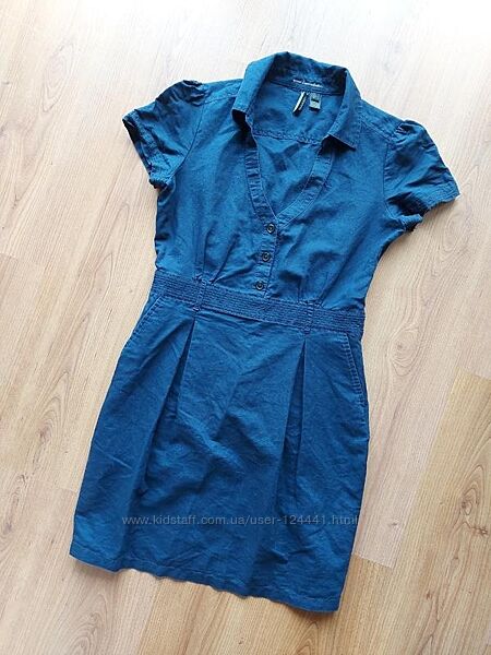 Льняна натуральна сукня Мango, р. L.55% льон, 45% бавовна. Стан ідеальний, фактично нової речі. Гарний виріз на грудях. У бічному шві блискавка. Є кишені. Спідниця від пояса на складках для вільного облягання стегон. Стильне літнє натуральне плаття.