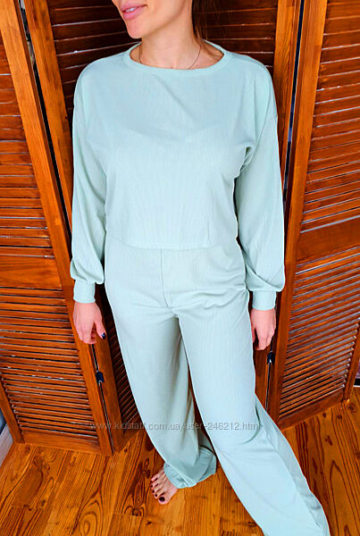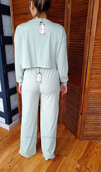 Подробное описание: Мятный лаунж костюм Boohoo в рубчик 46-48