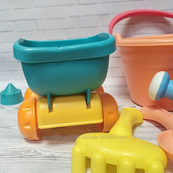 Для веселых летних игр вашему чаду пригодятся разнообразные формочки, лопатки и грабельки. Их маленький скульптор отыщет в наборе. Все предметы окрашены в приятные яркие цвета. Они будут долго служить ребенку и привнесут в его игры волну позитивных эмоций.В наборе: