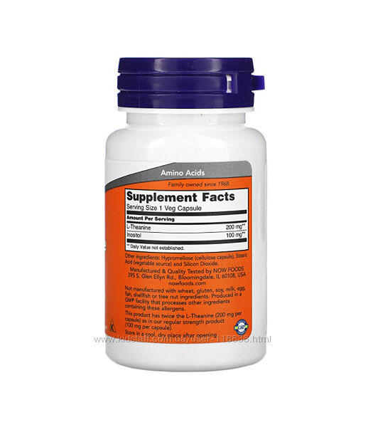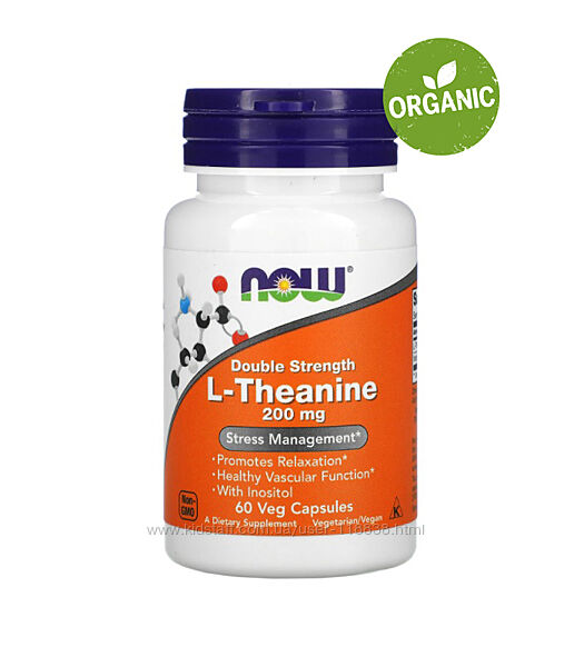 # Now Foods, L-теанин, двойной концентрации, 200 мг, 60 растительных капсулОПИСАНИЕ: