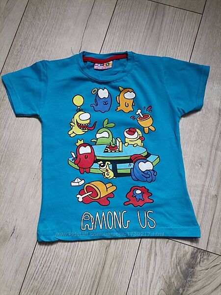 Подробное описание: Детская футболка голубого цвета Among us амонг ас, 1,3,5 лет