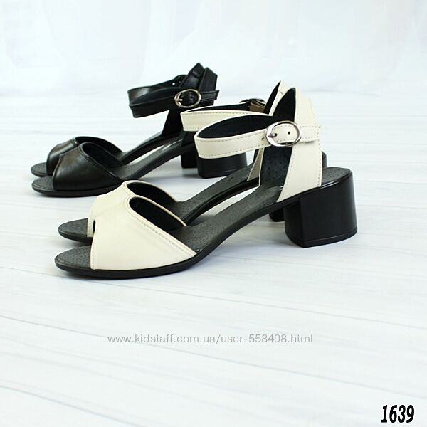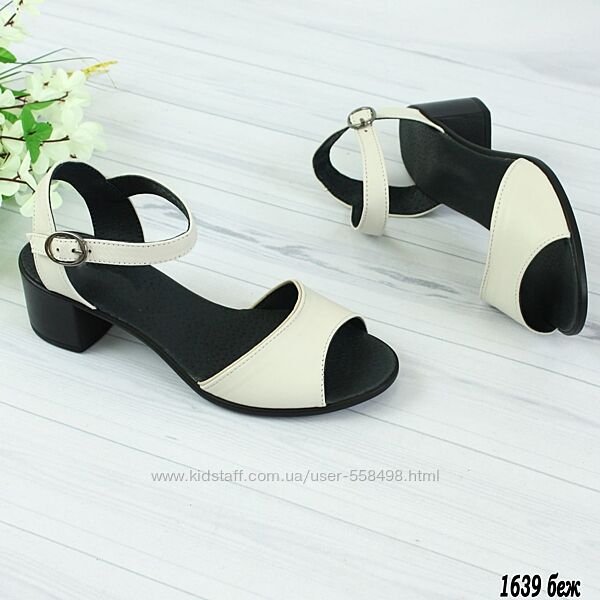 Подробное описание: Женские босоножки на невысоком каблуке кремового и черного цвета