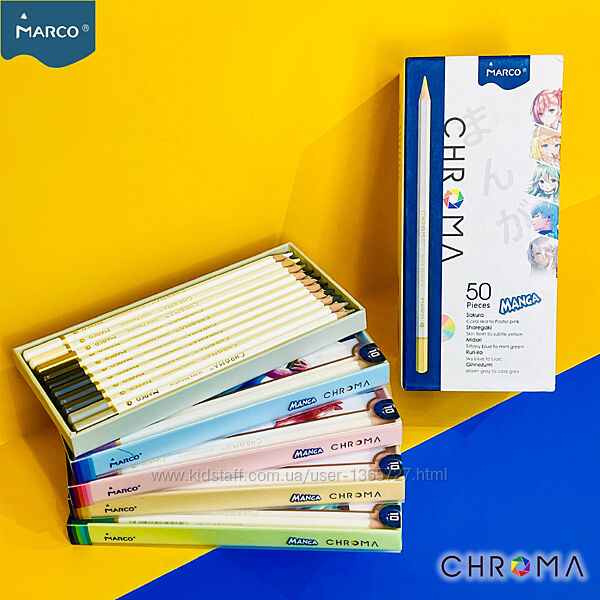 Подробное описание: Новинка 2025 набір олівців Marco Chroma 50 Pieces Manga з персонажами манги