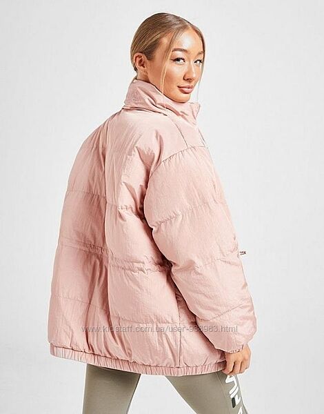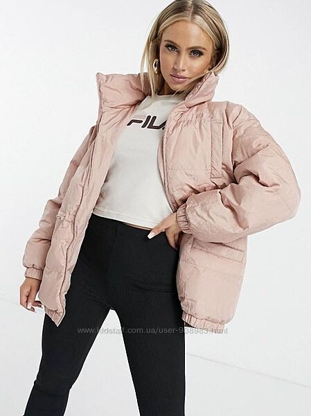 Стильный модный розовый пуховик спортивная куртка fila из затяжкой на поясе