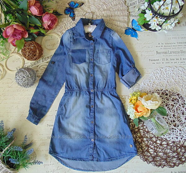 Джинсовое платье рубашка Hema на 9-10 лет,рост 134-140 см с рукавчиком трансформером из тонкого летнего коттона
