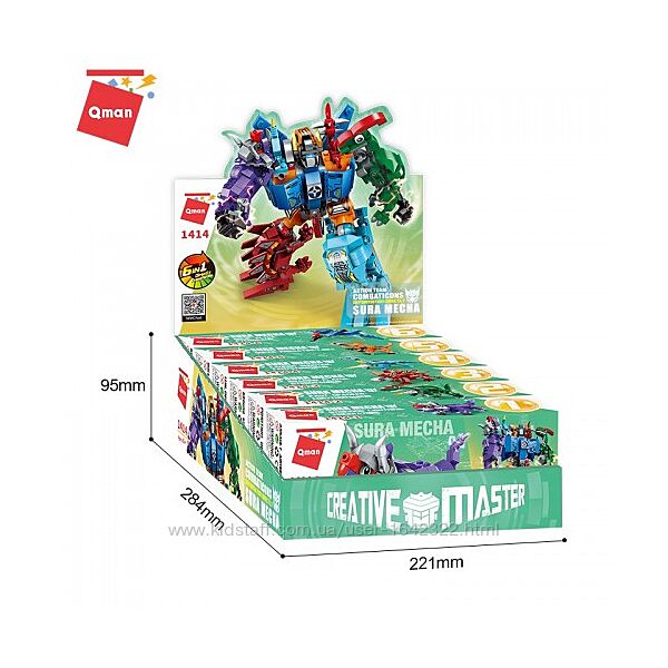 Конструктор Qman 1414 "Динозавры трансформер 6в1" 520+ деталейЭлементы конструктора надежно крепятся между собой. Игра с конструктором помогает развивать моторику пальчиков, внимательность, усидчивость, мышление и фантазию.