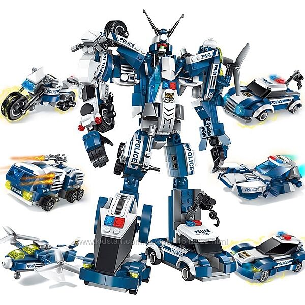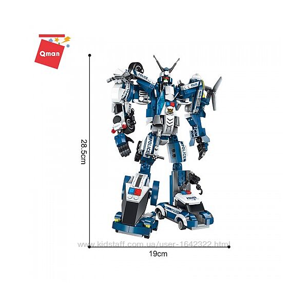 Конструктор Qman 1407 "Полицейский робот 6в1" 500 деталейНовая серия конструкторов 2018 года!