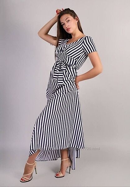 Одним из главных трендов летней моды, который годами не покидает лидирующих позиций - это, конечно же, полосатое платье.Платье-макси из материала софт с расширенной к низу юбкой и короткими рукавами.